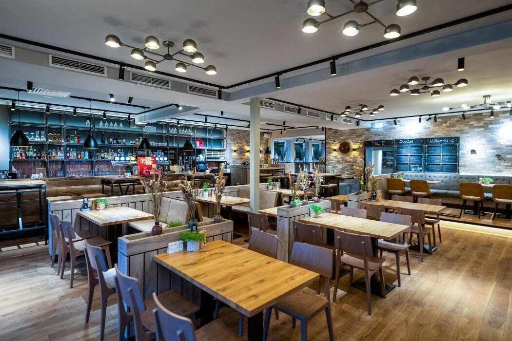 Das Schweinske ist ein rustikales Restaurant. Es flimmern Bildschirme und die Musik dröhnt laut. Aber diess stört nicht weiter, vielmehr kann man so sich von den anderen Gästen quasie "abschirmen"&... weiterlesen