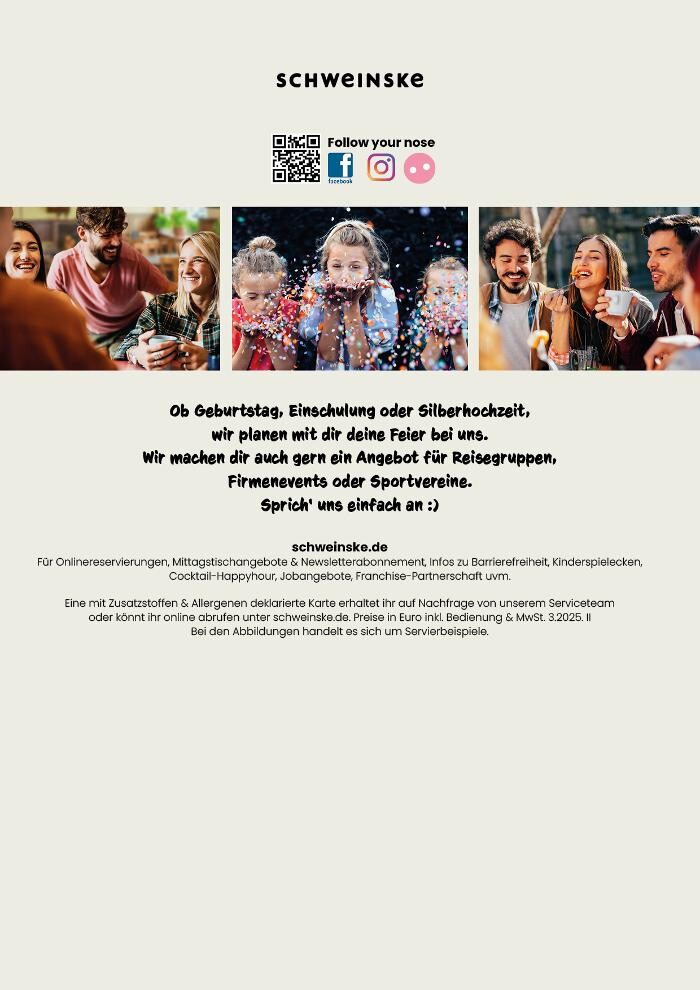 Das Schweinske nördlich von Hamburg empfängt euch herzlich! In Norderstedt könnt ihr zum Frühstück unsere süßen und herzhaften Leckereien genießen und bei Pancakes, Rührei oder Lachsbrötchen entspannt mit duftendem Kaffee in den Tag starten. Mittagstisch oder kleiner Imbiss zwischendurch gefällig? Das Restaurant bietet nicht nur Deftiges aus der Pfanne und vom Grill, sondern hat auch an die Veggies eurer Familie gedacht. Leckere Bowls, knackige Salate und vegetarische Alternativen erhaltet ihr ganz nach Wunsch. Unsere Beilagen könnt ihr zudem tauschen und neben Spätzle oder Onion Rings auch unsere Blumenkohl Wings im Teigmantel kennenlernen. Klassiker wie Pommes Frites und Bratkartoffeln zum Schnitzel bereiten wir natürlich ebenso gerne zu.